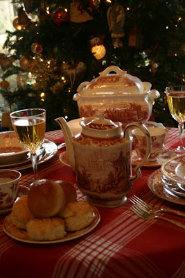 You can see some other red and white tranferware in the cupboard behind the table.
