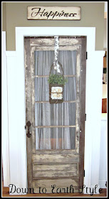 I saved this cute door from the dump. I peeled it off the frozen ground at the salvage store that I love. I paid $10 for that little gem. I had to rip the sides a little with my table saw so it would fit my basement door size. Many people think that it is a pantry door and that's OK but it really leads to my basement. It has been one thing in my home that gets lots of attention.